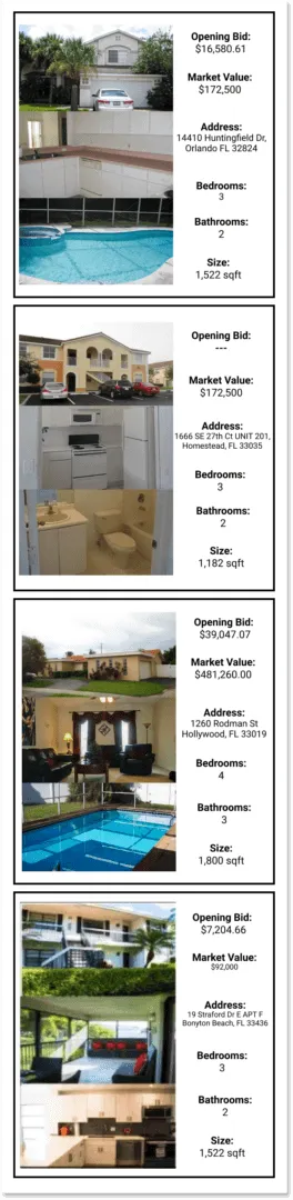 I became obsessed to learn how these guys were picking up good properties for pennies on the dollar and flipping them quickly to earn $25k to $100K or more per deal. This had nothing to do with Bank Foreclosures. No, these were properties being auctioned off by local counties due to non-payment of property tax. All the county wanted was the outstanding taxes owed. That’s WHY you can pick these homes up for pennies on the dollar.
